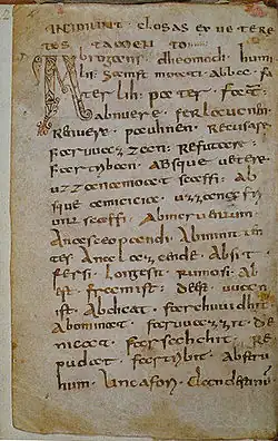 Dating from the 8th century (765–775), the glossary contains approximately 3,670 Old High German words in over 14,600 examples and is therefore a valuable source for the knowledge of the oldest Upper German language. It was named by German researchers after its first entry: abrogans = dheomodi (German: demütig = modest, humble).