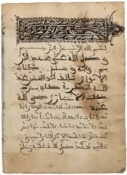 The Arabic Kitāb al-anwār survives in over a dozen manuscript, mostly from the seventeenth and eighteenth centuries. The earliest copy was made in Dénia in 1295 and is now shelfmark Borg. ar. 125[b] in the Vatican Library.[9][10] Part of the Anwār, or else one of its source texts, was translated into Latin in 1142–1143 by Herman of Carinthia under the title Liber de generatione Mahumet et nutritura eius ('Book of Muḥammad's Genealogy and his Nurturing'), as part of the project now known as the Corpus Islamolatinum sponsored by the Abbey of Cluny.[11][12][13] The Latin version survives in at least 23 manuscripts of the twelfth to sixteenth centuries.[14] Hermann worked in the city of León.[15] The Anwār also circulated in Spain in aljamiado form, that is, translated into Andalusi Romance and written in Arabic script, under the title El Libro de las luces. It is known from at least five manuscripts.[16]