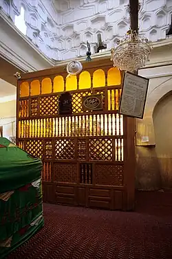 The tomb of Yusuf Abu al-Hajjaj is located under the dome of the mosque. The ceiling of this tomb chamber is composed of a base of irregular dimensions, which descends until it reaches the circular shape of the dome.[4]