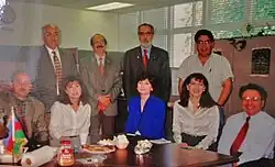 Elchibey (center right, background) on Voice of America in 2000.