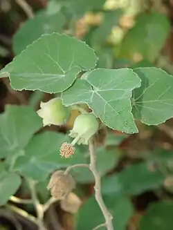 Abutilon eremitopetalum, commonly known as the hidden-petaled abutilon or hiddenpetal Indian mallow, is a species of flowering shrub in the mallow family, Malvaceae. It is endemic to dry forests and low shrublands on the windward side of the island of Lānaʻi in Hawaii. It is classified by the IUCN Red List as critically endangered by habitat destruction.[1] The species was first discovered in 1987.[1]