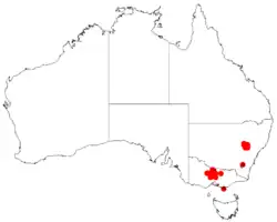 Ausfeld's wattle grows in alluvial gullies on flats and low hills between Mudgee, Ulan and Gulgong in New South Wales, and in dry forest and mallee between the Inglewood-Nagambie areas and Torrumbarry in Victoria.[3]