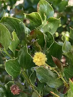 Acacia awestoniana, commonly known as the Stirling Range wattle,[5] is a species of flowering plant in the family Fabaceae and is endemic to a restricted area in the south-west of Western Australia. It is a spreading, sticky shrub with wavy, widely elliptic to elliptic, phyllodes, spherical heads of golden-yellow flowers, and narrowly oblong pods up to 22 mm (0.87 in) long.