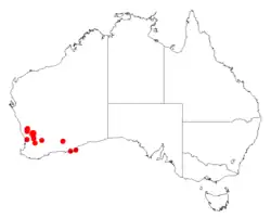 Subspecies cochlocarpa is restricted to near Watheroo, with an early collection west of Moora,[12] and subsp. velutinosa is restricted to near Manmanning, with an early collection near York.[15]