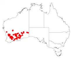 It is native to an area in the Wheatbelt and the Goldfields-Esperance regions of Western Australia.[1]