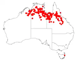 It is native to an area in the Kimberley region of Western Australia[2] across the top end of the Northern Territory and central Queensland. It is found in tropical areas and grows in shallow stony soils and loamy soils.[1]