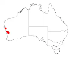 It is native to an area in the Mid West and Wheatbelt regions of Western Australia where it grows in flats, sandplains, low rises and ridges in stony sandy soils.[1] The bulk of the population is found from Mingenew in the north to Perenjori and Wubin in the south.