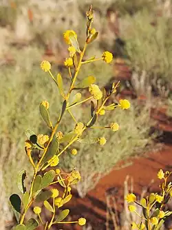 Acacia melleodora, commonly known as scented wax wattle,[1] waxy wattle,[2] honey wattle[3] or honey scented wattle,[4] is a shrub belonging to the genus Acacia and the subgenus Phyllodineae that is endemic to arid parts of central Australia.[5]