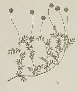 The bidibidi is a small plant with deeply divaricated opposite leaflets and long stems ending in a globular capitulum. The flowers are pink, red, or white.[3]