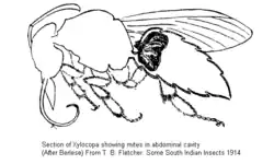 - ^ Okabe, Kimiko; Makino, Shun’ichi (2002). "Phoretic mite fauna on the large carpenter bee Xylocopa appendiculata circumvolans (Hymenoptera: Apidae) with descriptions of its acarinaria on both sexes". Journal of the Acarological Society of Japan. 11 (2): 73–84. doi:10.2300/acari.11.73.