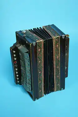 Sometimes, certain traditional music styles may even be tied to a certain type of accordion, like the Schrammel accordion for Schrammelmusik, the Trikitixa for Basque music, or the diatonic button accordion in Mexican conjunto and norteño music.[4] It would be hard to name one country in which the accordion did not play a significant role in its music tradition. It has even been idealized in literature.[5]