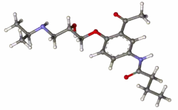 • O=C(Nc1ccc(OCC(O)CNC(C)C)c(c1)C(=O)C)CCC