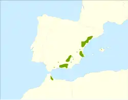 Acer granatense, or the Spanish maple, is a species of flowering plant in the genus Acer, native to southern and eastern Spain, including Mallorca in the Balearic Islands and the Rif mountains of Morocco.[3][1] Considered by some authorities to be a subspecies of the Italian maple, Acer opalus subsp. granatense, it is often found growing on cliffs and crevices in mountainous areas.[4] It grows from 190 and 2,000 meters elevation, often on north-facing slopes where it is sheltered from the effects of the Mediterranean climate summer droughts. It is often associated with Abies pinsapo, Quercus spp., Berberis vulgaris subsp. australis, Crataegus laciniata, and Juniperus oxycedrus.[1]