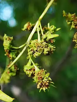 Aceria fraxiniflora, the ash flower gall mite, is a species of gall mite that produces galls on ash trees.[1] The male flowers of ash are greatly distorted by the mites, which results in a highly disfigured and disorganized gall that remains yellow or green, and later dries and turns brown. However, there is little evidence that this injury has a substantial impact on the ash plant's health.[2]