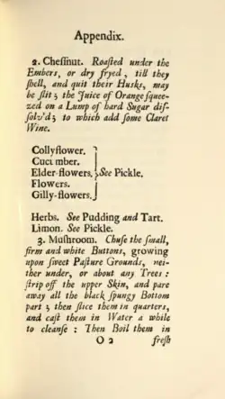 - ^ a b c Main, C. F. (1983). "John Evelyn's Salads". The Journal of the Rutgers University Libraries. 45 (2). doi:10.14713/jrul.v45i2.1630. ISSN 0036-0473.