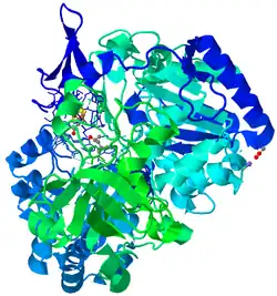 - ^ Seiffert GB, Ullmann GM, Messerschmidt A, Schink B, Kroneck PM, Einsle O (February 2007). "Structure of the non-redox-active tungsten/[4Fe:4S] enzyme acetylene hydratase". Proceedings of the National Academy of Sciences of the United States of America. 104 (9): 3073–3077. Bibcode:2007PNAS..104.3073S. doi:10.1073/pnas.0610407104. PMC 1805521. PMID 17360611.