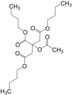 Acetyltributylcitrate is an organic compound that is used as a plasticizer. As such, it is a potential replacement of DEHP and DINP.[1] It is a colorless liquid that is soluble in organic solvents. It is found in nail polish and other cosmetics. It is prepared by acetylation of tributylcitrate.[2]