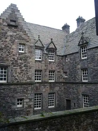 Sir Archibald and his wife, Margaret Hamilton, built Acheson House in 1633, but he may never have lived there, dying the following year. In 1636 the house was sold to Edinburgh merchant Patrick Wood. It passed through many owners, including the Incorporation of Bakers in 1784.[2] The house was subdivided in the 18th century. A brothel had been established in the house by the early 19th century.[3] Between 1830 and 1924 it was owned by the Slater family.[2]
