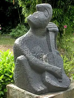 After his death, the suburban region of Arc-de-Seine acquired about twenty of his works so as to place them in the five constituent towns. In the town of Ville-d'Avray, five of them, principally statues evoking music, have been installed in the castle park, near the Academy of Music. Not far away, the town of Sèvres exhibits five works, among them Rooster, Guitar Player, and Maternity.