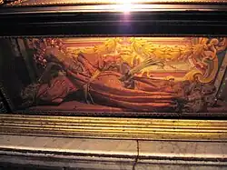 The veneration of the corpo santo named Candido in "Scarpi" (now Aci Catena) dates back to 1710, when the Princes Riggio of Campofranco and Campofiorito, who settled in Scarpi in 1672, donated the relics of Saint Candido Martyr to the Church of Santa Maria della Catena along with a marble altar from the same period. The relics, originally taken from the Catacomb of San Callisto in Rome, were gifted by Cardinal Vicar Gaspero Carpineo to Don Pietro di Campofiorito and then passed on to Prince Luigi II. Today, the corpo santo is kept in a crystal urn beneath the main altar, although this was likely not its original placement. A small square in the historic city center is named after Saint Candido.