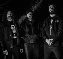 Acid Throne was founded in October 2021[2] by drummer-vocalist Chris Farrar, bassist-vocalist and guitarist Matt Stembrowicz, guitarist Craig Smith and singer-guitarist Chris Kemp.[3] Soon after the band formed, they secured a slot on the Jägermeister stage at Bloodstock Open Air Festival as a result of a joint win at Bloodstock's Metal to the Masses competition in 2022.[4] Acid Throne played at Bloodstock Open Air on Sunday 14 August 2022.[5]