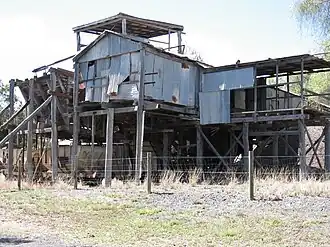 By 1971, with demand for coal for transport in decline, Acland was home to the only remaining coalmine on the Darling Downs.[21] The mine was Queensland's "oldest and smallest continuously worked coal mine" at the time of its closure in 1984.[30] The old colliery is state heritage-listed, being "the most intact mine site of its age and type in Queensland".[21][31] From the mine's closure in 1984, to the sale of the site to the Shire of Rosalie in 2000, the workings were operated as a mining museum by Kath and John Greenhalgh, the owners of the farm on which the mine was located.[21] In September 2006 Kath & John Greenhalgh sold the land to New Acland Pastoral Company.[32]