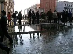 An acqua alta (/ˌækwə ˈæltə/,[1] Italian: [ˈakkwa ˈalta] ⓘ; lit. 'high water') is an exceptional tide peak that occurs periodically in the northern Adriatic Sea. The term is applied to such tides in the Italian region of Veneto. The peaks reach their maximum in the Venetian Lagoon, where they cause partial flooding of Venice and Chioggia; flooding also occurs elsewhere around the northern Adriatic, for instance at Grado and Trieste, but much less often and to a lesser degree.