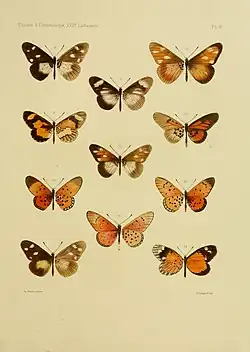 - ^ Henning, 1993 Phylogenetic notes on the African species of the subfamily Acraeinae. Part 2-3. (Lepidoptera: Nymphalidae) Metamorphosis 4 (1): 5-18, (2): 53-68