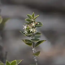 Acrotriche patula, commonly known as shiny ground-berry[2] is a species of flowering plant in the family Ericaceae and is endemic to the south of continental Australia. It is a rigid, prickly shrub with egg-shaped or narrowly egg-shaped leaves and small green, tube-shaped flowers and fleshy, red, spherical or oval fruit.