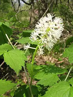 Actaea asiatica, commonly known as Asian baneberry,[1] is a species of baneberry that ranges throughout Asia. The flowers are ranges from gray to white. The berries are black-purple. The plant is extremely poisonous to humans. The fruits are eaten by birds which disperse the seeds.