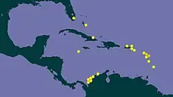 This species occurs in the Caribbean Sea (Colombia, Cuba, Mexico, Puerto Rico, Virgin Islands, Barbados, Martinique, Guadeloupe); also off the Bahamas.