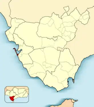 ![]() Cadiz (in red), with the site of the battle marked. | |||||||