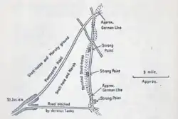 - ^ The account by Robert Perry (2014) is derived from the War Diary of the 1st Brigade (WO95/98), held at the National Archives and has been given precedence in this article over accounts by earlier authors, who did not have access to official records.[28]