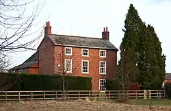 Dorfold Dairy House (SJ631518) was formerly the Dorfold Estate's home farm; a three-storey, three-bay, U-shaped building in red brick dating from the late 17th century, it is listed at grade II*.[72] The adjacent red-brick farm building is grade II listed.[73] Madam's Farm (SJ625526) off Raven's Lane was the former dower house of the Hall; a three-storey, three-bay, T-shaped building in red brick dating from the late 18th century, it is listed at grade II.[74] Other grade-II-listed buildings within the parish include the black-and-white Cuckoo Cottage (SJ625535) on Cuckoo Lane just north of Acton Grange, dating from the late 17th century, an unnamed red-brick cottage (SJ628539) by the Burford crossroads, dating from the early 19th century,[75][76] and the Old Farmhouse, Village Farm.[77] The unlisted Dorfold Cottage (SJ625530) is a Victorian house featuring a castellated tower and Gothic stucco-work on the interior.[57][78][79]