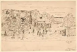 Eager to prove themselves following an argument about whether or not they should steal eggs from a white-owned farmstead,[7] the four had called at the house of Acton postmaster and storekeeper Robinson Jones.[8][5] Jones accused one of the Dakotas of failing to return a gun he had borrowed from him and drove the Dakotas out of his house after an argument.[8] The four Dakota then went to the nearby house of Howard Baker, where they requested water and tobacco and were accommodated by Mrs. Baker. Mr. and Mrs. Jones then also came to the Baker house, where Mr. Jones renewed his argument about the gun. Mrs. Baker, alarmed by the heated discourse, asked Mrs. Jones if she had given the Dakotas liquor. Mrs. Jones replied that she "had no liquor for such black devils as these."[8] The furious Dakotas then challenged the whites to a shooting match. After all parties had emptied their guns, the Dakota men then reloaded theirs and shot dead Mr. and Mrs. Jones, Mr. Baker, and Viranus Webster, a newly-arrived settler who with his wife had been spending the night with the Bakers.[8][5][9]