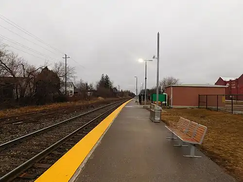 The previous station building near this site in Acton had been constructed in 1908 by the Grand Trunk Railway[3] with the origin of the line dating back to 1856.[4] The line ultimately became part of the Canadian National Railway system and regular service to the town was discontinued in 1967. GO Trains had also stopped at the station for a brief time between 1990 and 1993.