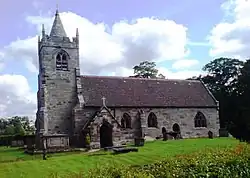 The village church dedicated to St James was originally built in 1212.[6] It was then enlarged and rebuilt in 1869 under the direction of G E Street, the architect being Andrew Capper.[7] The main additions were a combined vestry and organ chamber on the north side and a new south porch.[8] The church contains a monument to Richard Neville, of Rickerscote, 1728. The church was re-opened after restoration in 1870 having been closed for 44 years.