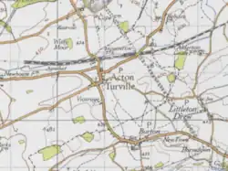 Acton Turville is a parish in the Cotswold Edge ward within South Gloucestershire, England. It lies 17 miles (27 km) east-northeast of Bristol. The M4 is south of the parish. Acton Turville consists of a cluster of households across 1,009 acres, with a total population of 370 people.[2] Acton Turville is also listed as "Achetone" in the Domesday Book.[3]