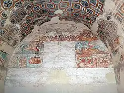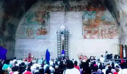 The first attempt to form a congregation of indios (native indigenous people), coinciding with the founding of the convent, was not completely successful, due to the fact that the indios abandoned the towns and returned to their old lands.[43] In 1560, Actopan became a dependency of Pachuca, but it was separated, and became Alcaldía mayor in 1568; Actopan was the head and the towns around it were the República de Indios.[11] The convent was the dividing line between the indigenous republics of Ixcuintlapilco and Actopan, to the southeast was Tenantitlán, a town subject to Ixcuintlapilco, and to the northwest, Actopan.[44] The description of Fray Juan de Medina, in 1571, contained in the "Description of the Archbishopric of Mexico", mentions that in Ixcuintlapilco there were 4000 tributaries, in Tenantitlán 1300 and in Actopan 7000.[45]