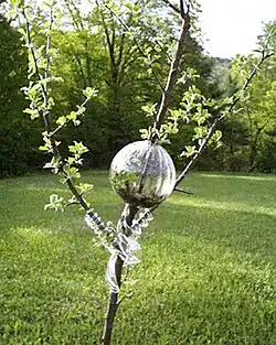 Robert DuGrenier, whose hand-blown glass pieces are permanently part of the trees, as they grow into and become one with the sculptures; Untitled by Robert DuGrenier, two hermit crabs that have moved into hand-blown glass shellsUntitled by Robert DuGrenier, hand blown glass sculptures on tree hand-blown glass "sea" shells, that living hermit crabs move into and take as their homes;[12] and a glass beehive, that is home to thousands of Italian honey bees who busy themselves making wax & honey sculptures, as programmed into the construction of the hive, by the artist.[13]