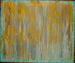 Alexia Nikov, of Russia, whose metallic paintings change over time from the effects of patinas & the environment;[16]"Desna" by Alexia Nikov, metal powders, rain & patinas on canvas, 60" x 72"