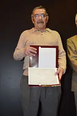 His first exhibition was at the Chalco Cultural Center, which he admits scared him to present his work to artists and intellectuals.[2] He has since exhibited in various museums and other cultural institutions as both artist and artisan in the State of Mexico and Mexico City,[5] and has exhibited in various Mexican universities.[1] His first and only major international exhibition of his work was in the United States, although he has sent pieces to Italy, France, Brazil and South Korea.[6][7][8] In 2014, he exhibited at the Museo de Arte Popular for the first time as a "grand master."[1]