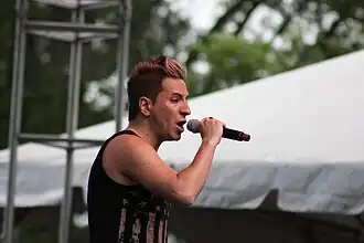 In September 2009, his music video for "Standing in the Rain" was voted No. 1 on Logo's Ultimate Sexiest Music Video Countdown.[39] The music video for "VIP" was filmed in December 2009 and contains cameos from The Real World: Hollywood's Nick Brown, Project Runway's Nicholas Putvinski, Michael Musto, Reina, and Jipsta. It premiered on Pop Lab on Logo on April 13, 2010.[40] "VIP" was featured on the premiere of season 6 episode of The Bad Girls Club and also on The Real World: Las Vegas.[41][42] In January 2011, he was featured on the show Face to Face with Ke$ha on the HERE! Network, although the two were not filmed together.[43]