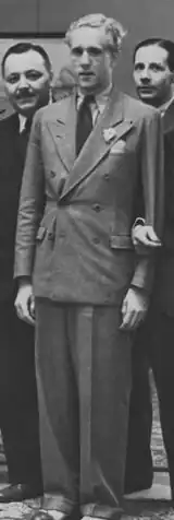 ![]() Baworowski (center), during a reception for the 1939 Davis Cup match between Poland and China | |