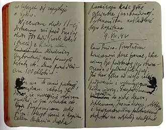 Czerniaków kept a diary from 6 September 1939 until the day of his death. It was published in 1979 and has been translated into English. His wife Niunia survived the war and preserved his diaries.[6] Adam Czerniaków is interred in the Okopowa Street Jewish Cemetery in Warsaw.[5][7]