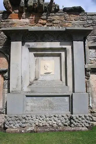 He is buried in the churchyard of St Andrews Cathedral, against the east wall. His large mural monument includes a carved profile portrait in marble.
