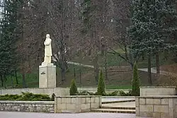 The park's creation was initiated by the Znicz Educational Society, which was involved in promoting education, culture, and reading,[19] led by pharmacist Jan Zarewicz, who donated the southern and western slopes of Stróżnia Hill to the city for a nominal fee, hence the name "Aptekarka".[20] Similarly, Dr. Aleksander Mniszek-Tchorznicki, who, as a judge and head of a delegation, contributed to keeping Morskie Oko within Poland's borders during a territorial dispute, donated over six morgs of land on the northern slope in 1910 to expand the park. The signing of the contract was announced on 12 May 1910.[21][22] The annexed northern section was named after Fryderyk Chopin in 1910 to commemorate his centenary. As a result, the northern section of the park became known as "Chopin Park".[23] A sandstone-encased spring, the Chopin Spring, was adorned with a bronze plaque featuring Chopin's likeness, crafted by sculptor Maria Gerson-Dąbrowska[24] and produced at the Sanok Wagon Factory.[25][26]