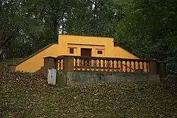 - A non-existent Memorial Monument, erected during German occupation to mark the attack on the Soviet Union, inscribed: "Zur Erinnerung an den 22. Juni 1941 Festungs-Pionierstab 24 Vorm. Oberbaustab 33. 1940-1942".[18][48] A dome taken from a Soviet bunker in Krzywula near Lesko was placed on the monument's structure. The inscription's metal letters were gradually removed post-war, and the monument was demolished in 1957.[49]
