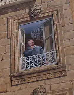 “In the year 1576, 'ledict' Adam de Craponne died of illness in Nantes, Brittany, employed by King Henry III of France to fortify the city, where he was believed to have been poisoned by envious Italian workers, ... He died within 24 hours and was buried in the l'église Notre-Dame”.[4]