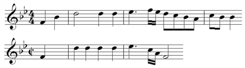 Of the music of the final section, Kinderman remarks, "Most striking of all is the musical intensification of the last stanza in the Allegro molto. In the piano, he compresses the melodic outline from the beginning of the song, with its upbeat from F leading to repeated Ds and then the dominant seventh supporting E♭.[13] The "compression" pointed out by Kinderman is illustrated in the following figure and sound files.
